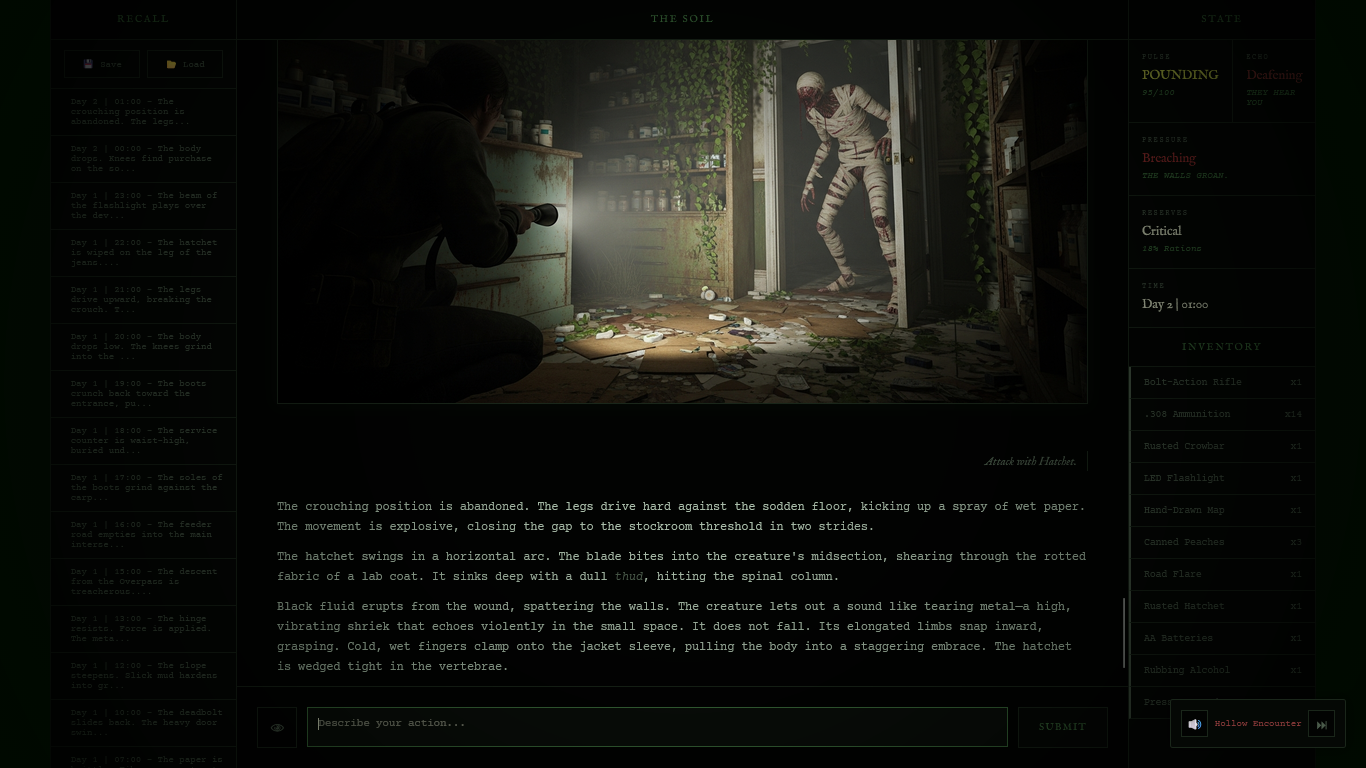 BLACK ICHOR is a text-based survival experience grounded in material reality.